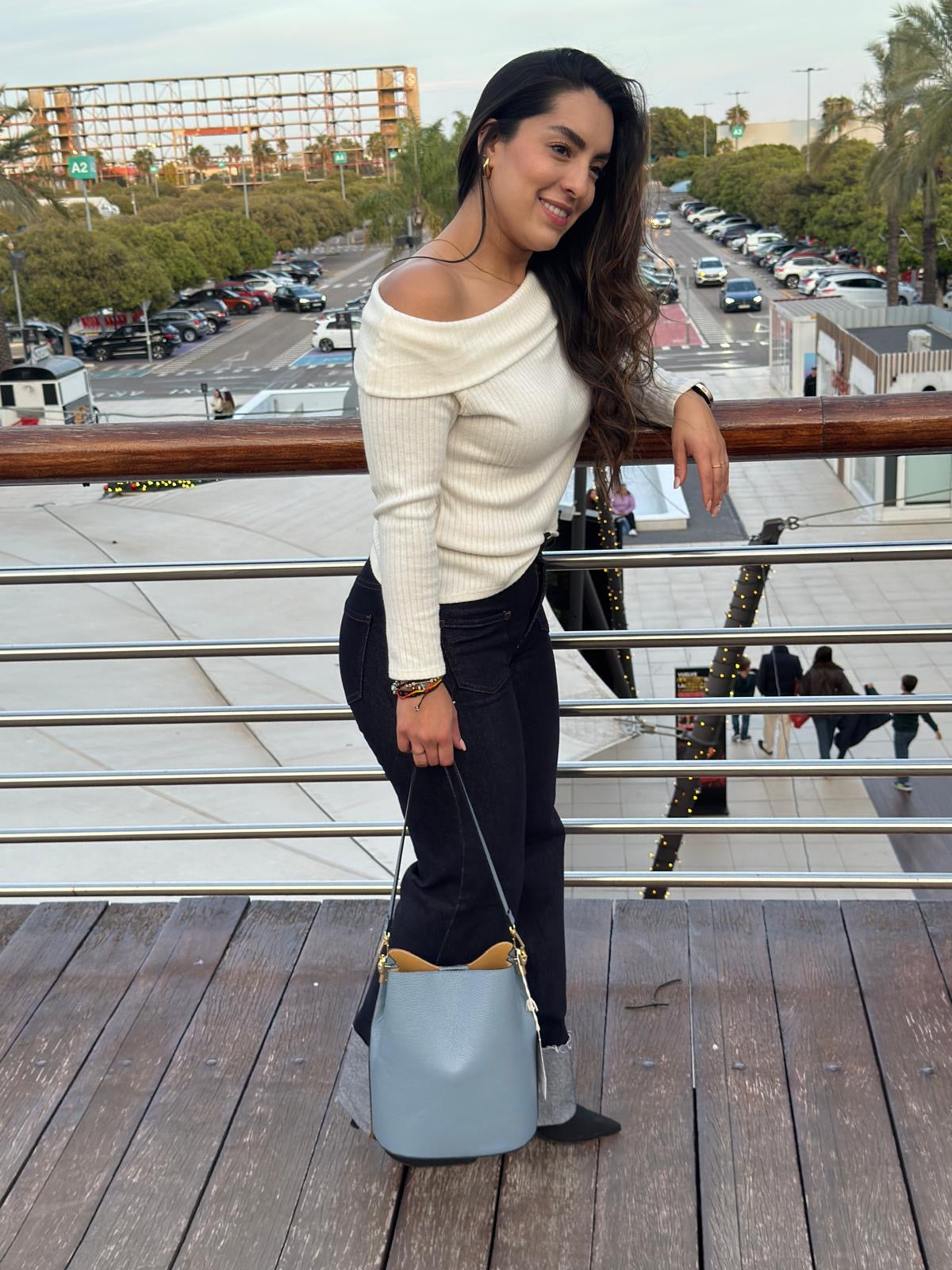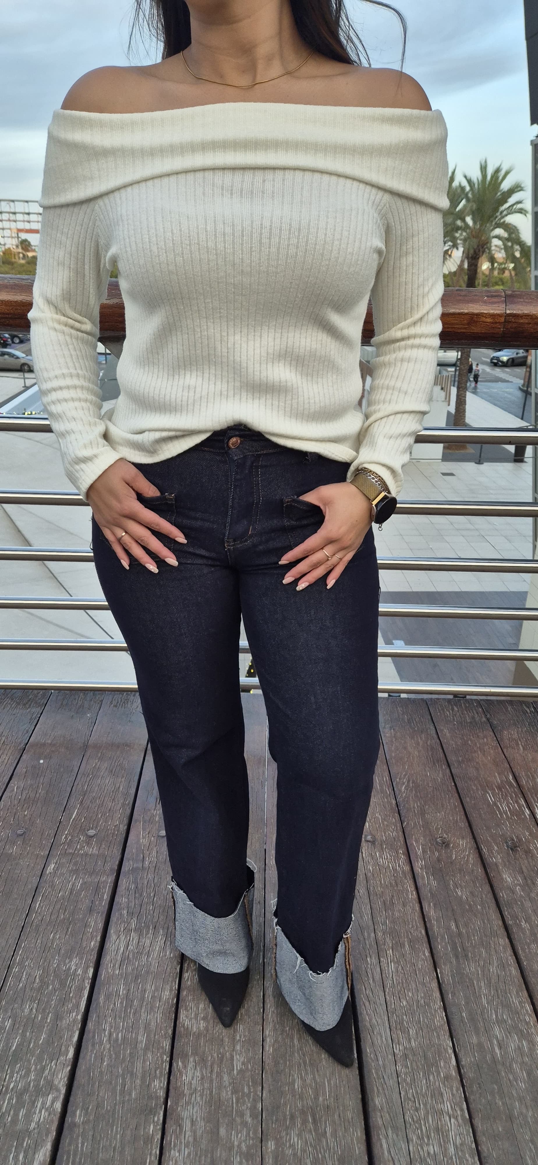 Jersey tejido, cuello bardot.