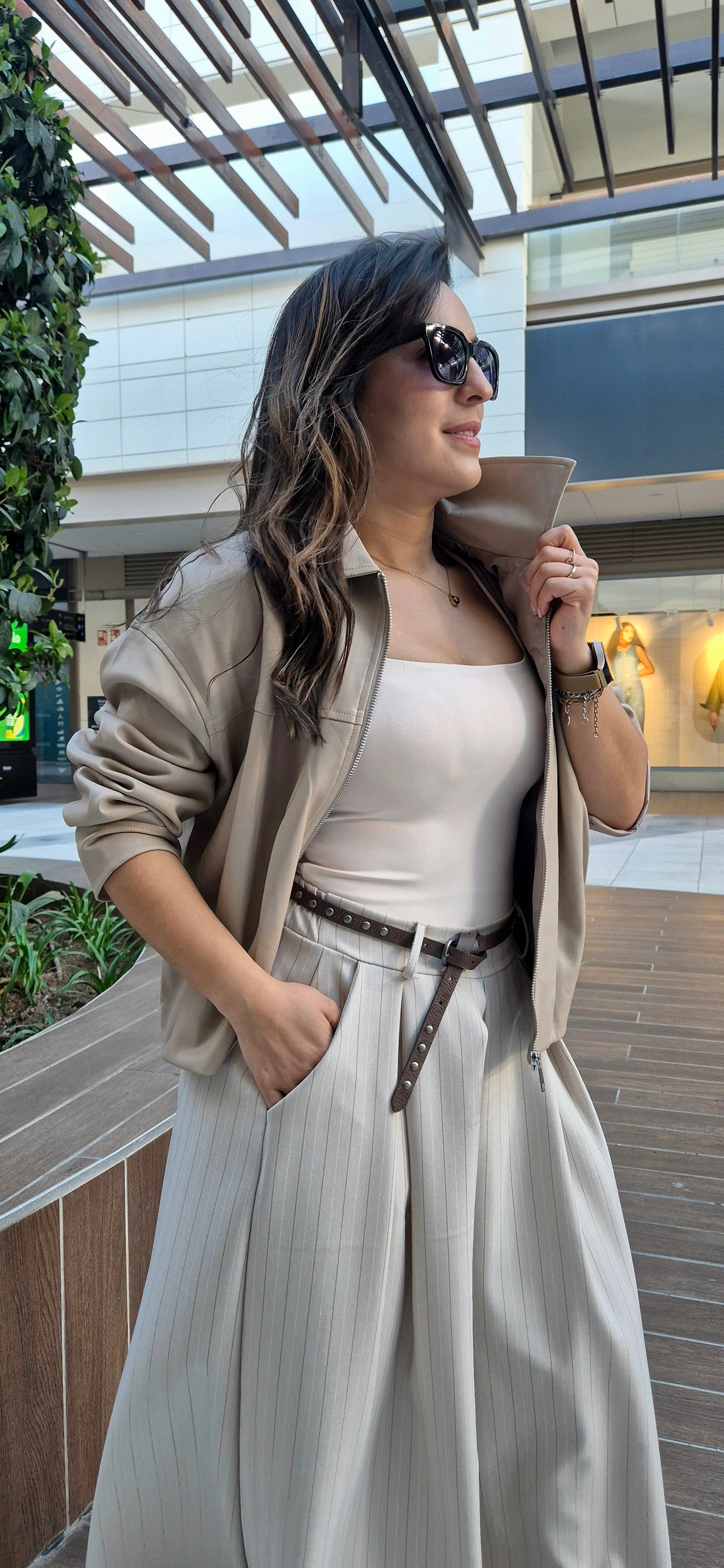Elegante y atemporal, esta chaqueta destaca por su corte estructurado que estiliza la figura, cierre metálico frontal y cuello clásico. Su acabado suave con ligero brillo aporta un aire sofisticado, ideal para elevar cualquier look con un toque moderno y exclusivo. Una pieza versátil y esencial en el armario femenino